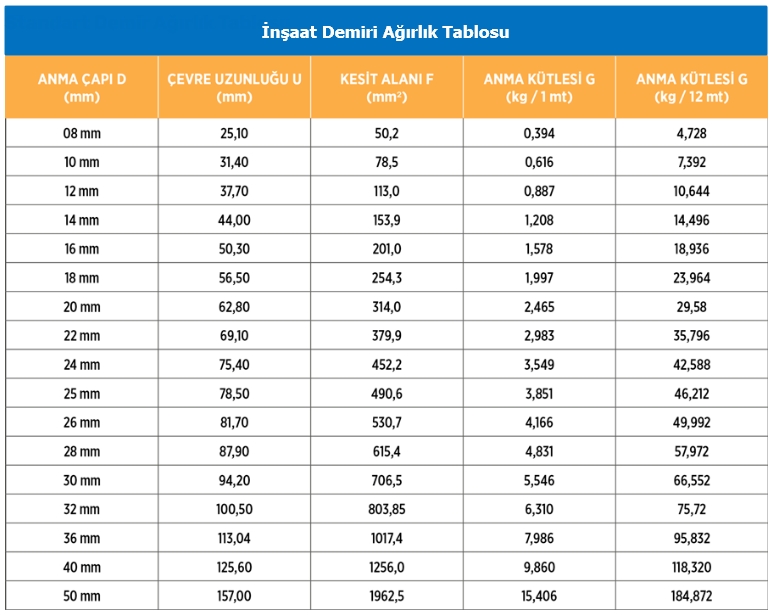 - İnşaat demiri standardı